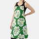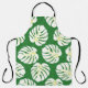 Seamless pattern of white monstera leaves on a dark green background. illustration