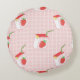 Seamless pattern with cute cartoon strawberry milk round cushion