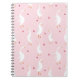 Seamless pattern with cute duck with heart on pink notebook