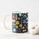 Seamless pattern with different kinds of microorganisms on dark blue background. Viruses. Bacteria biology organisms seamless pattern.