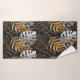 Seamless pattern with gold, silver tropical plants on a background. Modern exotic abstract design. Vintage illustration.
