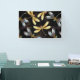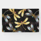 Seamless pattern with gold, jewellery, shiny dragonflies with detailed, sparkling wings on black background. Gold dragonfly.