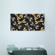 Seamless pattern with gold, jewellery, shiny dragonflies with detailed, sparkling wings on black background. Gold dragonfly.
