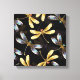Seamless Pattern with Golden Dragonflies Canvas Print