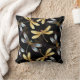 Seamless pattern with gold, jewellery, shiny dragonflies with detailed, sparkling wings on black background. Gold dragonfly.