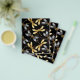 Seamless pattern with gold, jewellery, shiny dragonflies with detailed, sparkling wings on black background. Gold dragonfly.