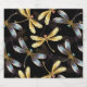 Seamless pattern with gold, jewellery, shiny dragonflies with detailed, sparkling wings on black background. Gold dragonfly.