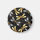 Seamless pattern with gold, jewellery, shiny dragonflies with detailed, sparkling wings on black background. Gold dragonfly.