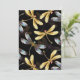Seamless pattern with gold, jewellery, shiny dragonflies with detailed, sparkling wings on black background. Gold dragonfly.