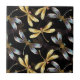 Seamless pattern with gold, jewellery, shiny dragonflies with detailed, sparkling wings on black background. Gold dragonfly.