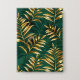 Seamless pattern of gold, jewelry, shiny fern branches and leaves on green, woodland, textured background. Golden fern.