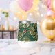 Seamless pattern of gold, jewelry, shiny fern branches and leaves on green, woodland, textured background. Golden fern.