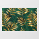 Seamless pattern of gold, jewelry, shiny fern branches and leaves on green, woodland, textured background. Golden fern.