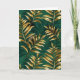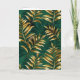 Seamless pattern of gold, jewelry, shiny fern branches and leaves on green, woodland, textured background. Golden fern.