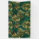 Seamless pattern of gold, jewelry, shiny fern branches and leaves on green, woodland, textured background. Golden fern.