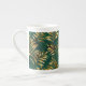 Seamless pattern of gold, jewelry, shiny fern branches and leaves on green, woodland, textured background. Golden fern.