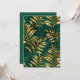 Seamless pattern of gold, jewelry, shiny fern branches and leaves on green, woodland, textured background. Golden fern.