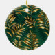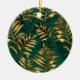 Seamless pattern of gold, jewelry, shiny fern branches and leaves on green, woodland, textured background. Golden fern.
