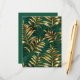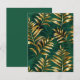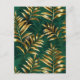 Seamless pattern of gold, jewelry, shiny fern branches and leaves on green, woodland, textured background. Golden fern.