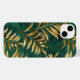 Seamless pattern of gold, jewelry, shiny fern branches and leaves on green, woodland, textured background. Golden fern.