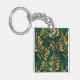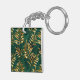 Seamless pattern of gold, jewelry, shiny fern branches and leaves on green, woodland, textured background. Golden fern.