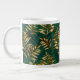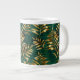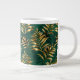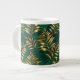 Seamless pattern of gold, jewelry, shiny fern branches and leaves on green, woodland, textured background. Golden fern.