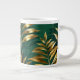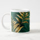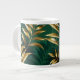 Seamless pattern of gold, jewelry, shiny fern branches and leaves on green, woodland, textured background. Golden fern.