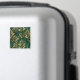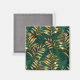 Seamless pattern of gold, jewelry, shiny fern branches and leaves on green, woodland, textured background. Golden fern.