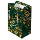 Seamless pattern of gold, jewelry, shiny fern branches and leaves on green, woodland, textured background. Golden fern.