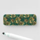 Seamless pattern of gold, jewelry, shiny fern branches and leaves on green, woodland, textured background. Golden fern.