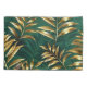 Seamless pattern of gold, jewelry, shiny fern branches and leaves on green, woodland, textured background. Golden fern.