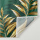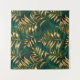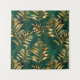 Seamless pattern of gold, jewelry, shiny fern branches and leaves on green, woodland, textured background. Golden fern.