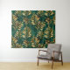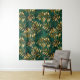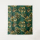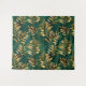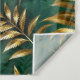 Seamless pattern of gold, jewelry, shiny fern branches and leaves on green, woodland, textured background. Golden fern.