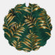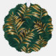 Seamless pattern of gold, jewelry, shiny fern branches and leaves on green, woodland, textured background. Golden fern.