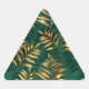 Seamless pattern of gold, jewelry, shiny fern branches and leaves on green, woodland, textured background. Golden fern.