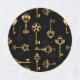 Seamless pattern of antique, gold and silhouette keys on black background.