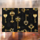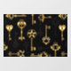 Seamless pattern of antique, gold and silhouette keys on black background.
