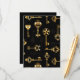 Seamless pattern of antique, gold and silhouette keys on black background.