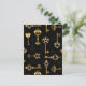Seamless pattern of antique, gold and silhouette keys on black background.