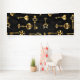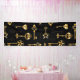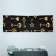 Seamless pattern of antique, gold and silhouette keys on black background.