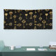 Seamless pattern of antique, gold and silhouette keys on black background.