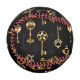 Seamless pattern of antique, gold and silhouette keys on black background.