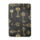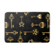 Seamless pattern of antique, gold and silhouette keys on black background.