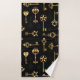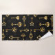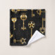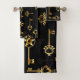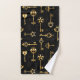 Seamless pattern of antique, gold and silhouette keys on black background.