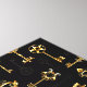 Seamless pattern of antique, gold and silhouette keys on black background.