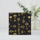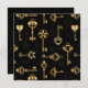 Seamless pattern of antique, gold and silhouette keys on black background.