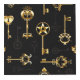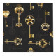 Seamless pattern of antique, gold and silhouette keys on black background.