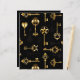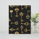 Seamless pattern of antique, gold and silhouette keys on black background.