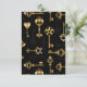 Seamless pattern of antique, gold and silhouette keys on black background.