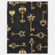 Seamless pattern of antique, gold and silhouette keys on black background.